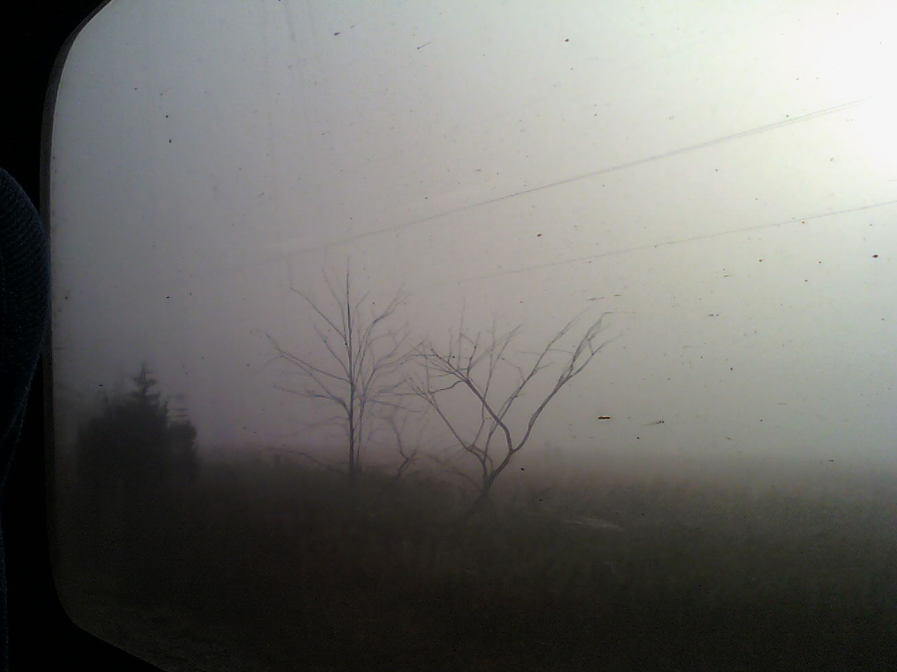I’ve been out out of town since last week. Here are some pictures I shot with my cell phone on the train from Michigan yesterday morning – the fog made everything eerie and beautiful…